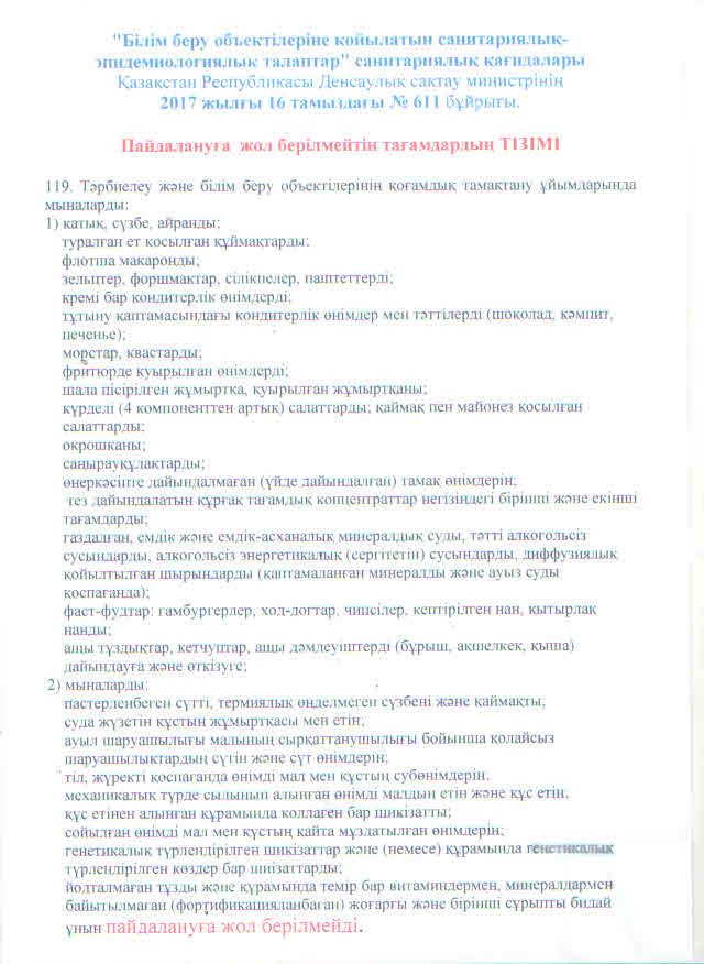 Оқушыларды тамақтандыру мен санитарлық -гигиеналық режимді талдау