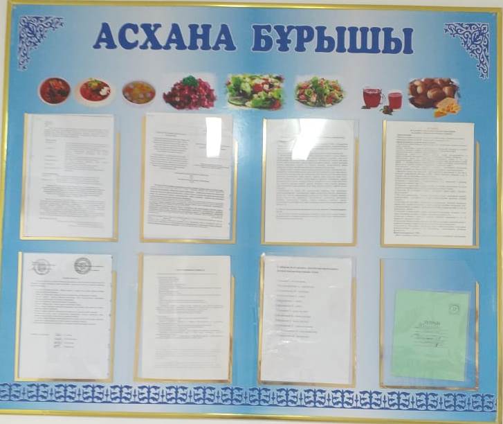 С. Шарипов атындағы мектеп – интернатында жалпы оқушы саны 483, оның ішінде 244 оқушы ыстық тамақпен қамтылып отыр. Оқушылар екі ауысымда тамақтанады. 1 – 4 сынып бойынша барлық 179 оқушы түгелдей қамтылса , 5 – 11 сынып аралығында 65 аз қамтылған оқушылар тамақтанады. Мектеп – интернат асханасы 150 орынға арналған, буфеті жоқ. Тамақтың сапасы мен асхана тазалығына жауапты дәмбике А. Құлмағамбетова және аға аспазшы Г. Галиева. Оқушыларды ыстық тамаққа апарып әкелуге жауапты мектеп мұғалімдері және мектеп әкімшілігінен кесте бойынша кезекшілер тағайындалған. Асханада дұрыс тамақтану туралы бұрышы бар.