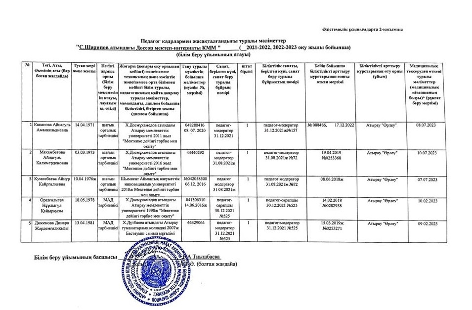 7 - Қосымша педагог кадр сапалық құрам