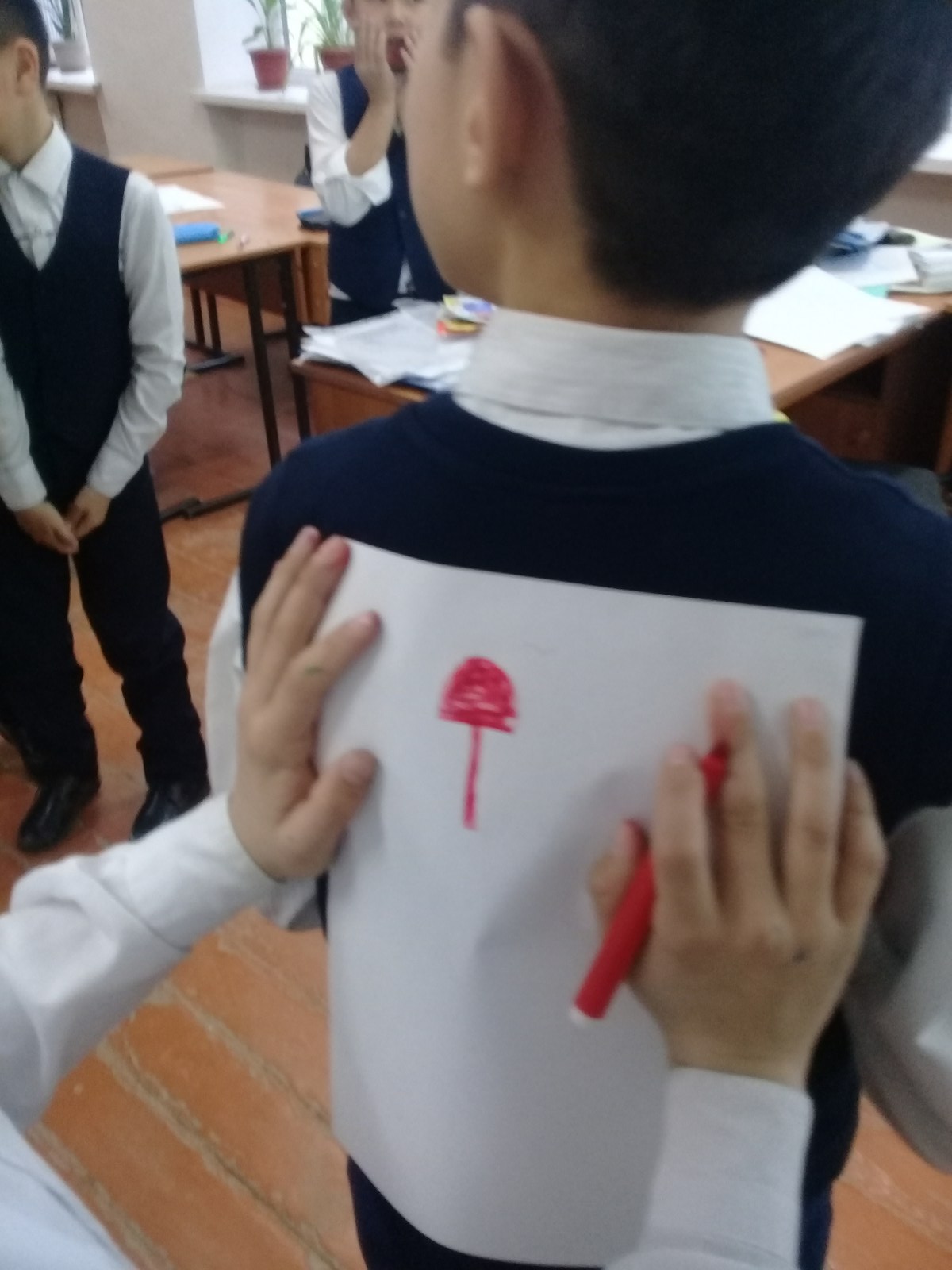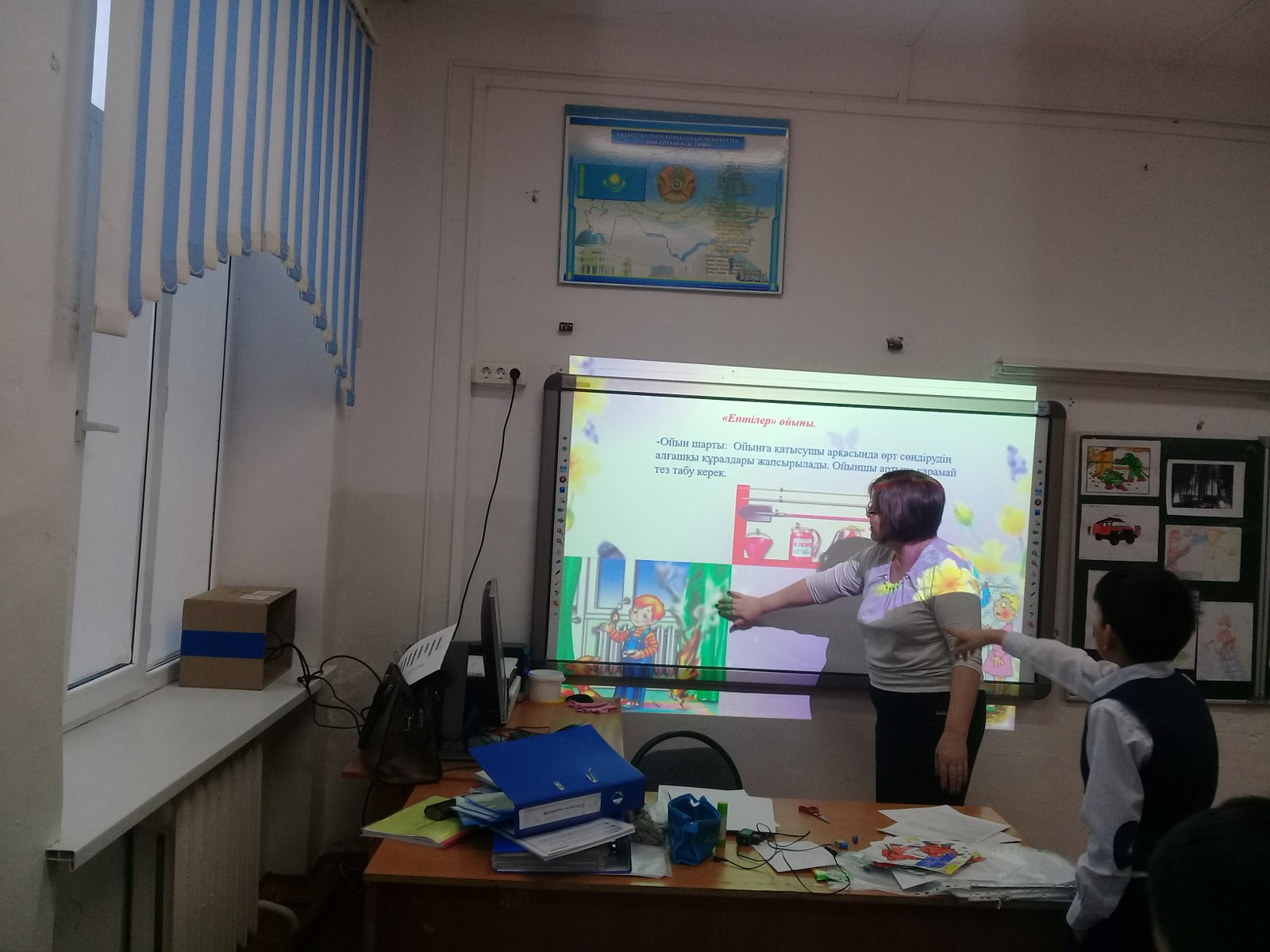 Ақерке: Қазір әрбір оқушының алдына қызыл, сары, жасыл тустер таратылады, сол арқылы сабақтың қалай өткенін көрсетесіңдер. Яғни, қызыл түс- жаман, сары түс- орташа , жасыл- өте жақсы.